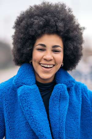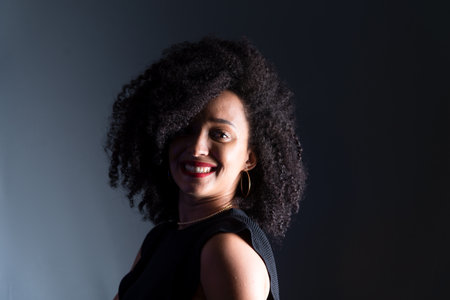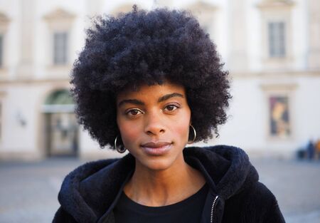 Portrait of a young african american woman with curly hair