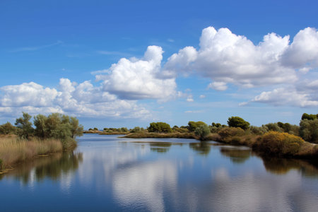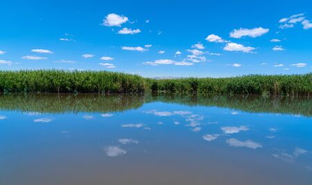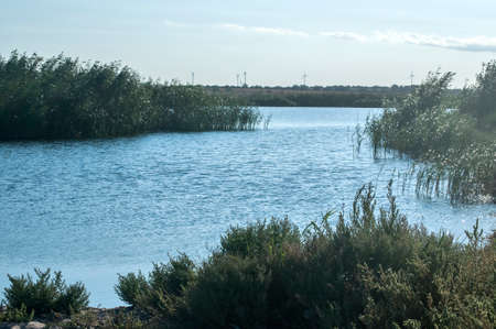 View of the landscape of the river Delta del Ebro, Catalunya, Spain. Copy space for text