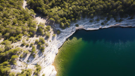 Generative AI : Aerial view of Lake Slano in National park Telascica in Croatia