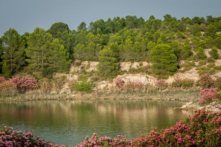 Oleanders in bloom in the Embalse del Mayes in Murcia. Spain