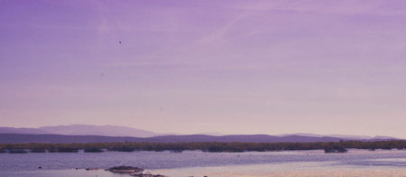 Distant lake shore in early morning with high contrast