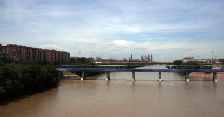 beautiful modern landscape of Zaragoza spain in summer day with river and bridge