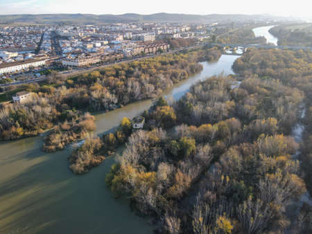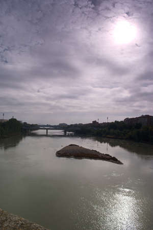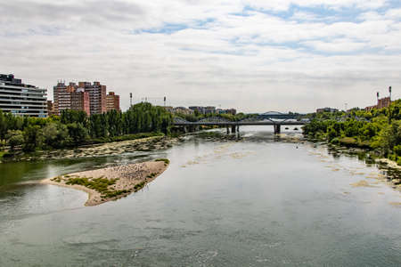 Ebro river in Zaragoza in Spain. July 12, 2022