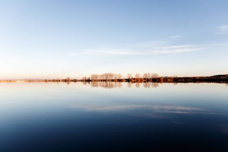Beautiful lake horizon with clear blue sky in detail