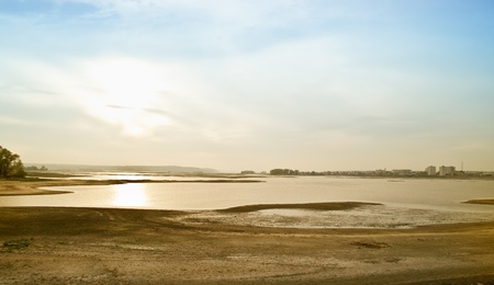 Distant lake shore in early morning with high contrast