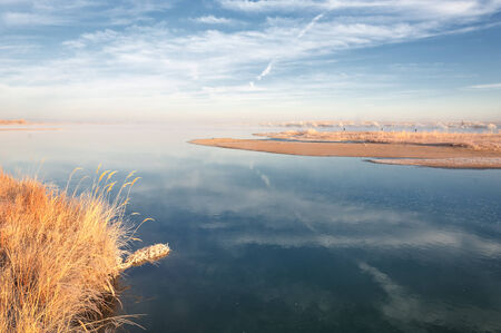 Reflection in the water of the lagoon in the evening.