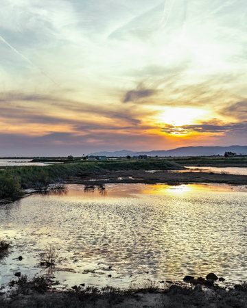 Beautiful sunset in the Albufera Natural Park, Valencia, Spain. High quality photo