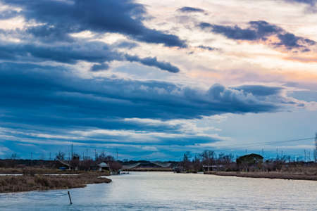 Italian landscape from Po river lagoon, water