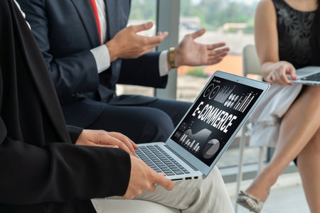 A business meeting focused on customer acquisition strategies, with laptops displaying various digital marketing tools. . --ar 16:7 --v 6.1 Job ID: bbaf2fd0-61ea-44ab-a1d3-debc23ce8bad