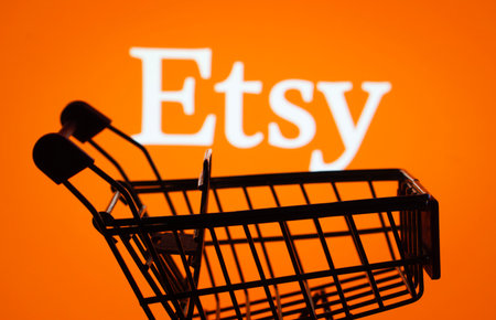 Kazan, Russia - Oct 6, 2021: Etsy is an American e-commerce company focused on handmade items and craft supplies. Smartphone with Etsy logo on screen in the shopping cart.