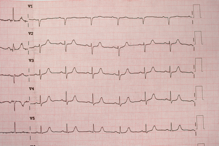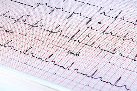 electrocardiograph EKG or ECG diagram printed on grid paper. High quality photo