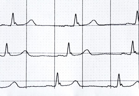Cardiogram, waves of heart beat, EKG on the paper, arrhythmia