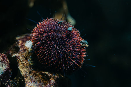 atomy Sea urchin (Strongylocentrotus purpuratus), close-up, Red Sea, Egypt, Africa
