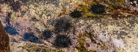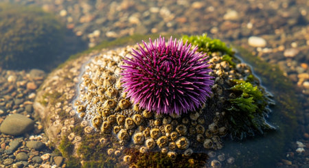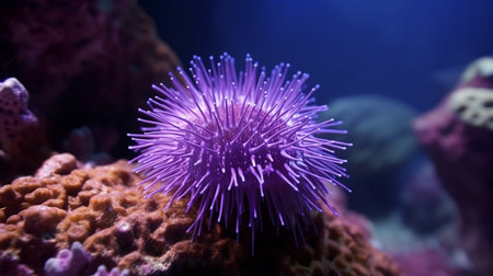 Sea urchins underwater in the Atlantic ocean (purple sea urchin Paracentrotus lividus) Generative AI
