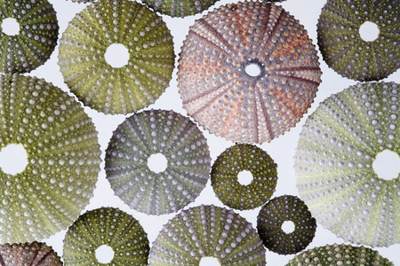 skeleton of sea shell green echinoidea isolated on white background- macro