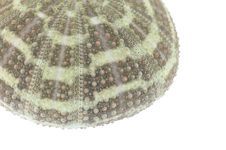 Sea urchin shell on white background. Close up view.