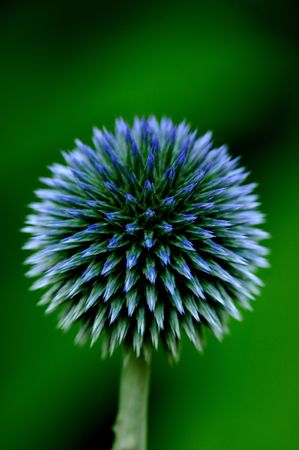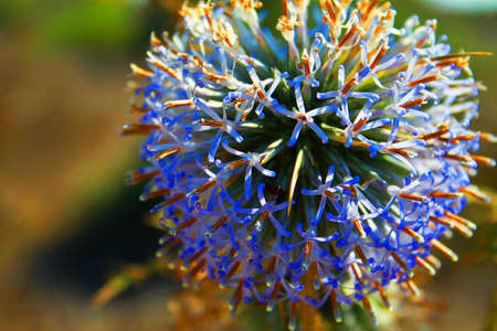 Nice macro photo of the flower of a thistle in blue tones, scientific name Echinops ritro