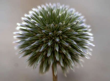 Flower buds of Great globe-thistle or Echinops sphaerocephalus close-up, selective focus, shallow DOF.