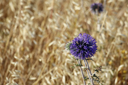 In the wild, the honey plant echinops sphaerocephalus blooms.