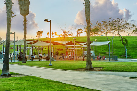 Park in Jaffa near the sea at sunset.