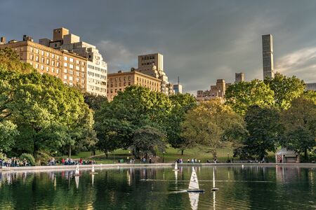 NEW YORK, USA - OCTOBER 12: This is a view of the Central Park Model Boat Sailing Pond, a popular tourist destination on October 12, 2019 in New York