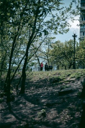 Green park on the street with people