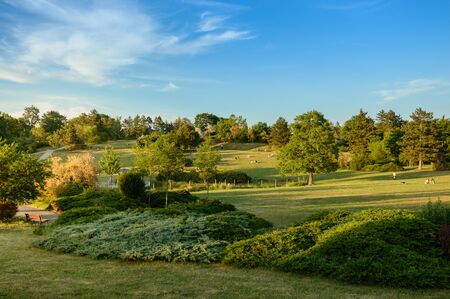 Green park at the planetarium in Brno. A place to relax on a summer day.