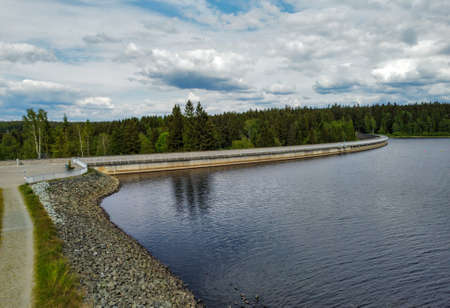 The Bedrichov Dam Reservoir was built in 1902-1905 on the Black Neisse River. The dam is 23 meters high and 340 meters long.