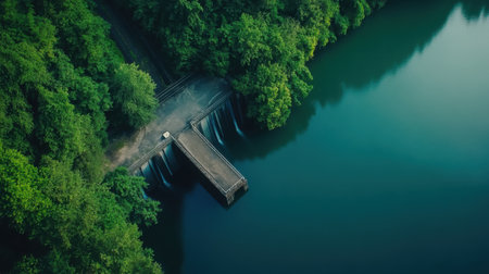 A hydroelectric dam surrounded by greenery, showcasing clean energy solutions.