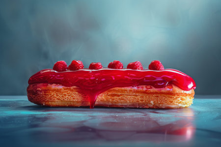Red Eclair Cake, Delicious Delicious Dessert, Strawberry Mirror Glazed Eclair, Copy Space, Generative AI Illustration