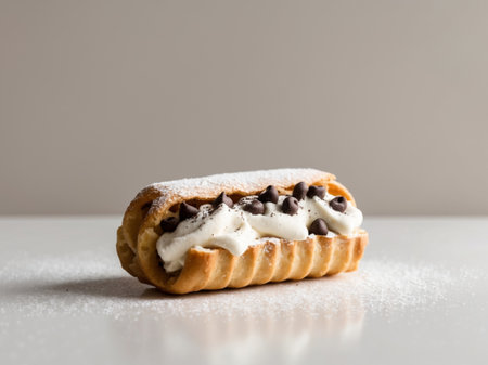 AI Generated. Cannoli with ricotta and chocolate chips dusted with sugar