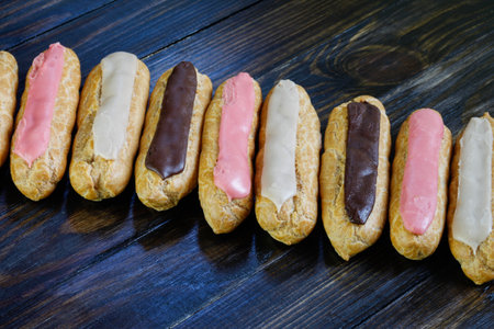 Eclairs on a wooden background