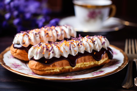 Beautiful eclairs on a plate