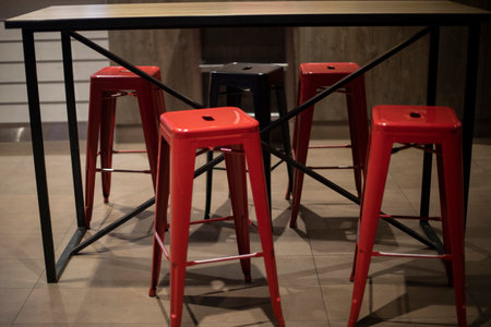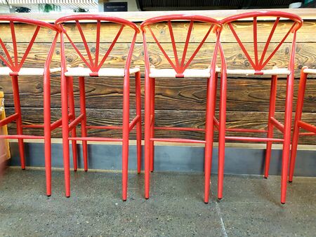 Chairs in restaurant. Bar seating. Red chairs. interior details.