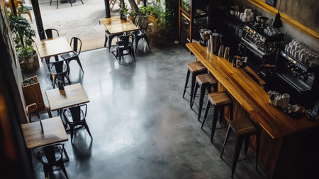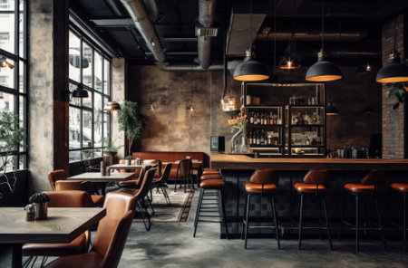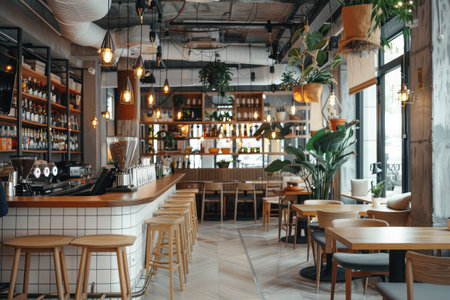 Inviting empty modern cafe restaurant with stylish interior design and comfortable seating