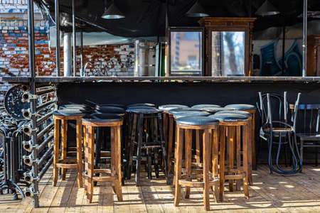 bar counter and chairs in a summer cafe. high quality photo