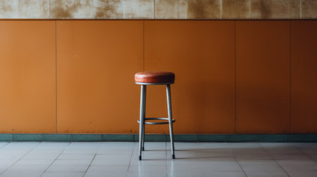 bar stool in a simple and clean brutalist environment captured in an editorial style photograph. shot with a mamiya rz67, the image showcases the zoomed-in details of the stool. ai generated