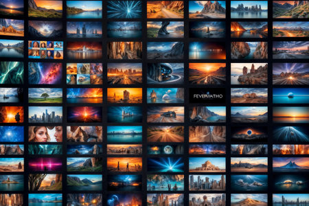 A large screen with many different images on it. Media tv video technology concept