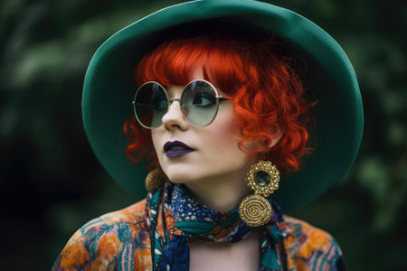 Quirky and eccentric portrait of a woman with unique style, wearing mismatched clothes and quirky accessories
