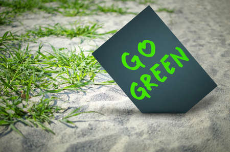 Go green and save the world with environment friendly effort. The message Go Green letters arranged to promote eco awareness for sustainable future with biophilc design background. Gyre