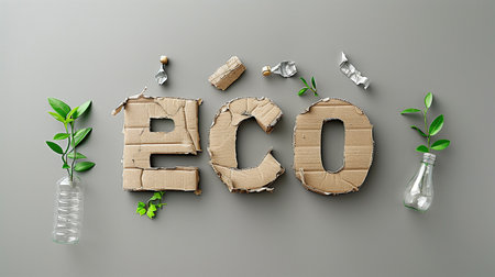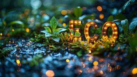 An eco friendly sign made of green foliage surrounded by lush plants, emphasizing environmental sustainability and green living. High quality photo