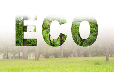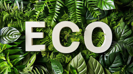 The word ECO is prominently displayed in large white letters with green leaves and plants surrounding it