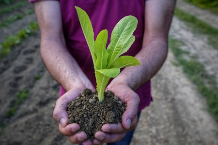 A hand holding a seedling symbolizing the importance of sustainable agriculture and responsible farming practices.