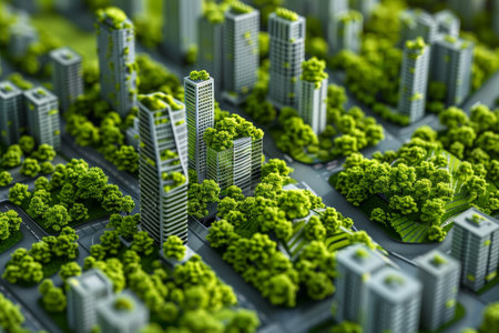 A stunning portrayal of a miniature cityscape blending modern architecture and lush greenery, symbolizing the balance between urban development and nature conservation.