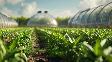 Rows of leafy greens flourishing in an organic farm field, their vibrant colors reflecting the purity of sustainable farming.