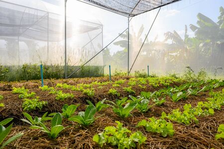 greenhouse Growing vegetables and greens In front there is a vegetable plot to grow green vegetables.