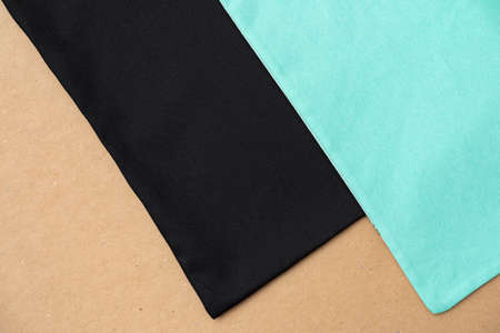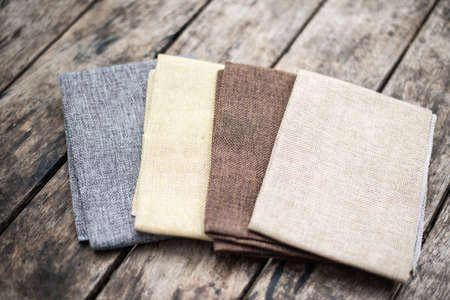 Close up fabric on wood table.