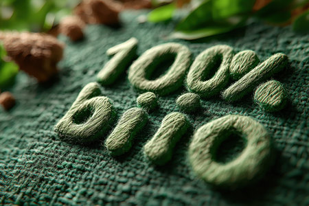 Textured green design showcasing 100 percent bio environmental sustainability emphasis