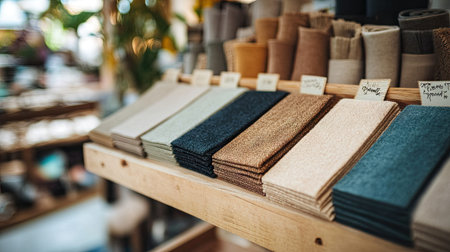 A vibrant and inviting display features a range of textured fabric samples, showcasing a beautiful selection ideal for home decor and creative projects.
