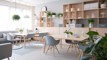 Inspiring office interior design Scandinavian style Corporate Office featuring Natural elements architecture. Generative AI AIG 31.